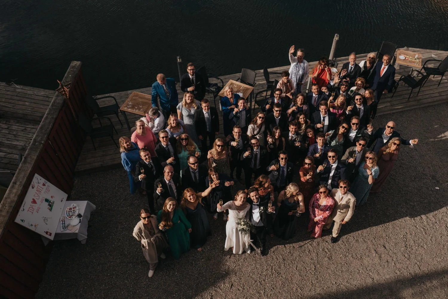 När temat för bröllopet är havet så är det en självklarhet att porträttfotograferingen kommer ske vi just havet. Vi åkte till Björholmens Marina och fotade porträtt runt hamnen. Först med brudföljet innan brudparet fick chansen att landa en stund tillsammans, ja och sen en fotograf i hasorna såklart. Vi avslutade porträtten med att gå ut och möta upp båten som skulle köra brudparet runt hamnen för att anlända till brudskålen.